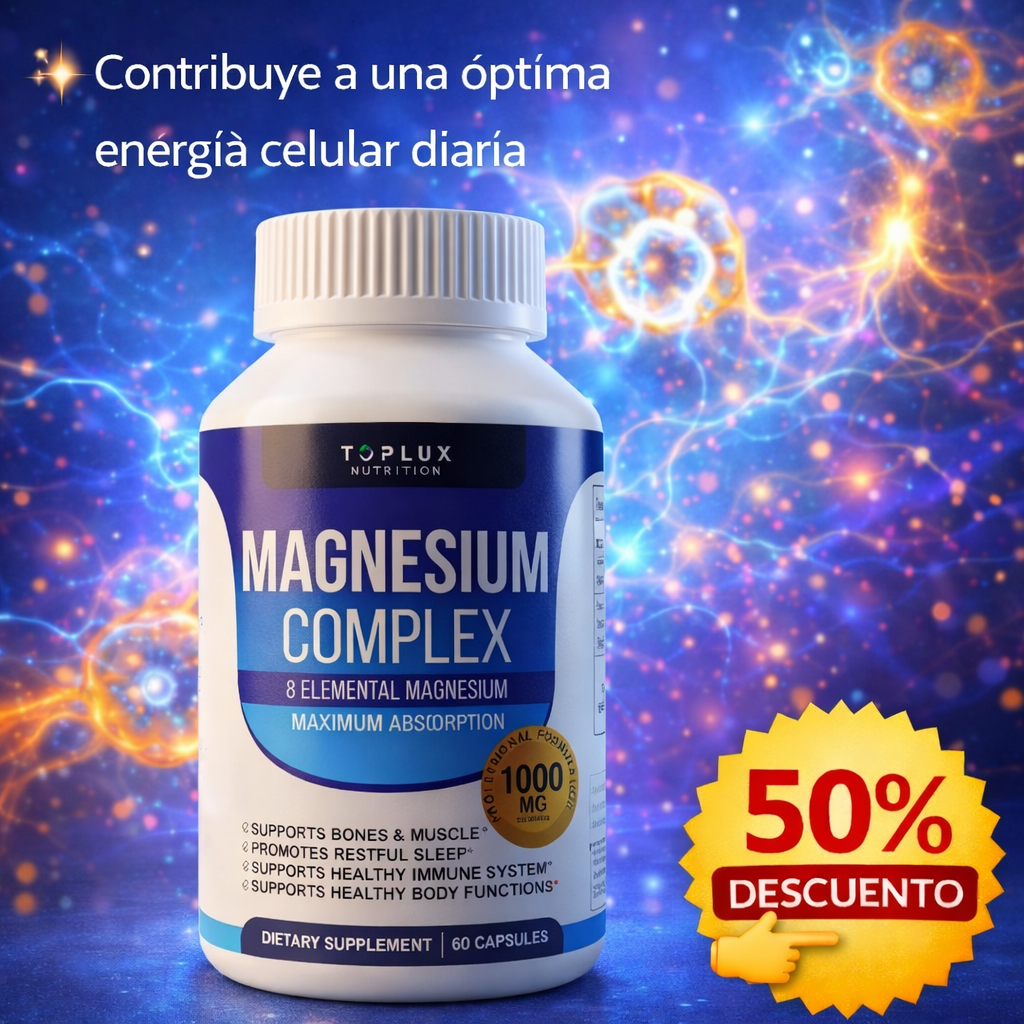 Tu cuerpo te está pidiendo magnesio, y el Magnesium Complex de Toplux llega para devolverte esa fuerza y vitalidad que habías perdido.